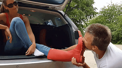 Madame Marissa was not going to let this guy go without being dominated a little bit. That is because he was the perfect candidate for it. The mistress wanted to make sure that she tried some new stuff on him and that is why she stopped the car and she had him lick the soles of her boots. He was also trampled a little bit before the mistress felt it was enough.