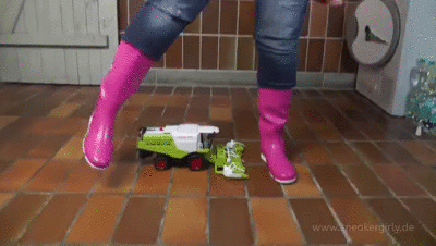 This mistress wanted to try crush fetish but she did not want to hurt anyone. So she did the next best thing and she used her rubber boots to crush toys as she felt that there would be no harm done to anyone if she crushed inanimate objects. And it was fun as she destroyed them completely and she made a mess in the process of her trampling and stomping.